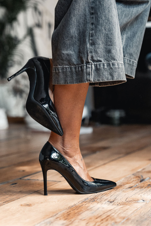 Black patent leather court shoes