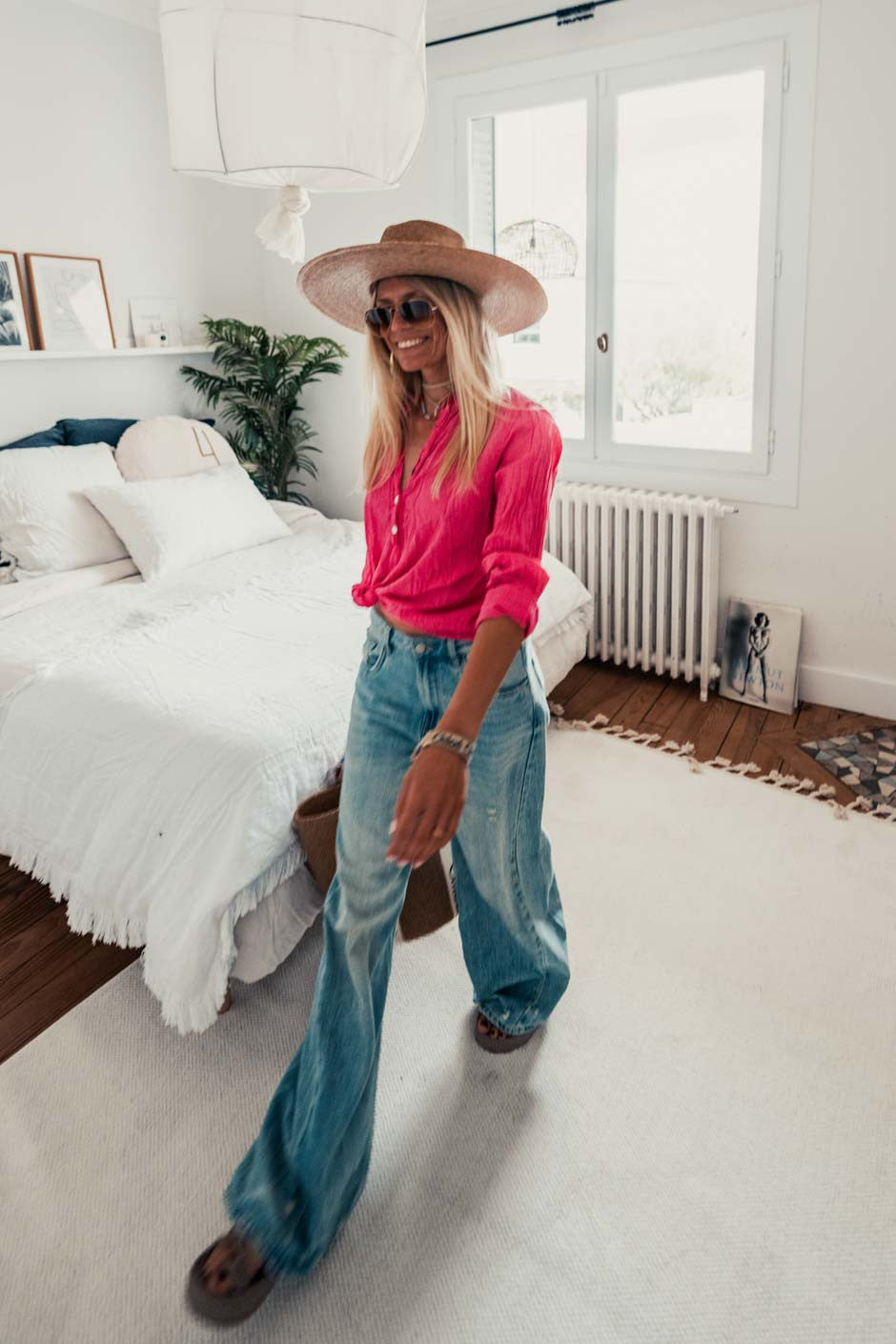 The Kovan blouse, a Grungemama classic, is a timeless and elegant piece, an essential addition to your wardrobe. We love its simple yet effective look, and the pink color is perfect for spring.