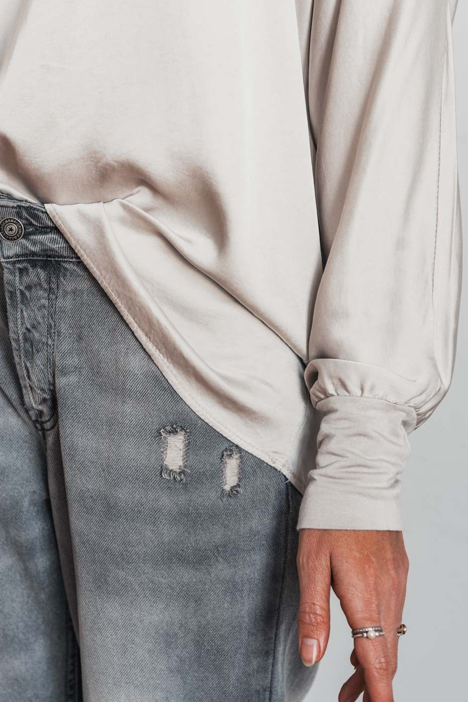 The Sintra beige blouse by Grungemama impresses with its satin fabric and comfortable fit. Its long sleeves with fitted cuffs add a touch of structure, perfect for a look that's both chic and relaxed. Ideal for pairing with jeans or dress pants.