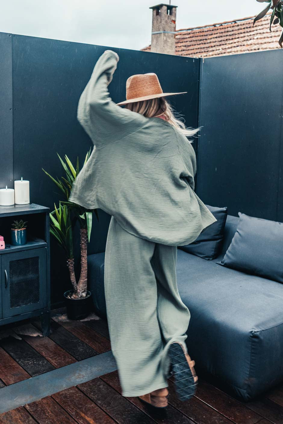 The Harper shirt, a Grungemama creation in cotton gauze with a mandarin collar, is the epitome of bohemian chic, standing out with its lightness, natural material and absolute comfort.