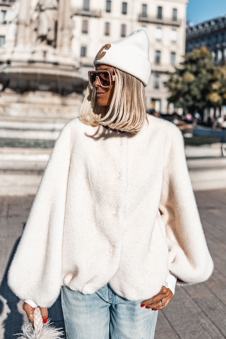 The Grungemama Gabriella ecru fur is the star piece in the Grungemama wardrobe: a soft and ultra-fashionable faux fur that will make a statement. The perfect combination for a cozy and super trendy look, paired with jeans, it's simply gorgeous!