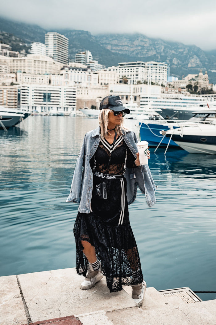 The Lou by Grungemama black lace skirt: sensual and slightly sheer, given a sporty twist with contrasting bands. Wear it with sneakers for a cool and confident look, or with heels for a chic and daring style. The look will be stunning!