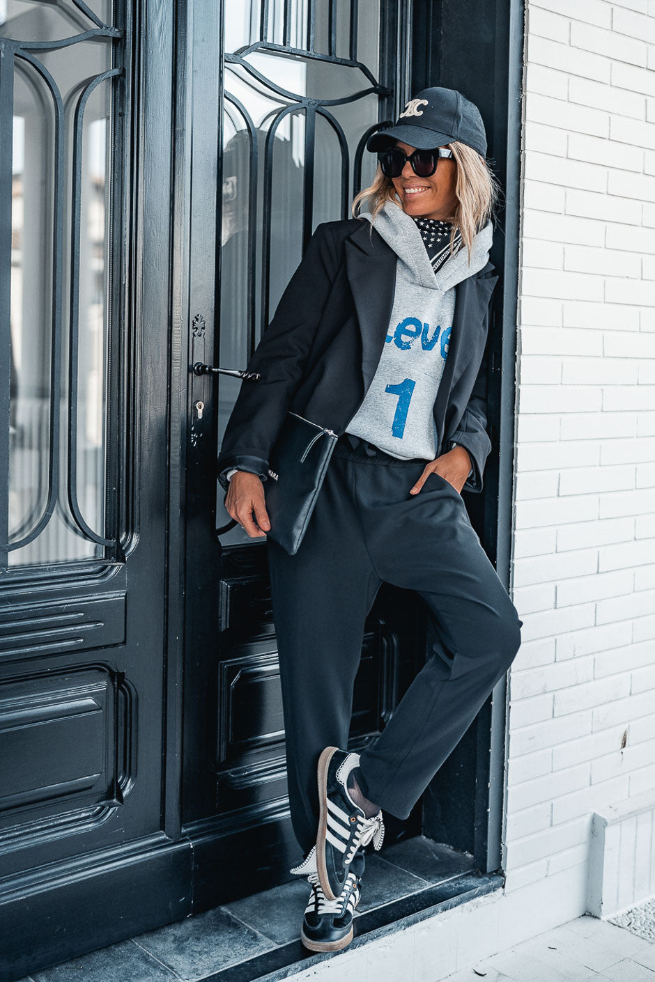Embrace the Outlaw black trousers from Banditas: a perfectly flowing cigarette cut that blends comfort with timeless chic. Wear them with a sweatshirt and blazer for a relaxed yet stylish look.
