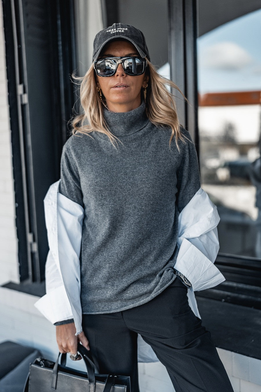 We're going to love this winter: the Shadow sweater in anthracite from Banditas. We appreciate its cozy collar and its timeless, minimalist style. We love layering it; we adore the look at Grungemama!