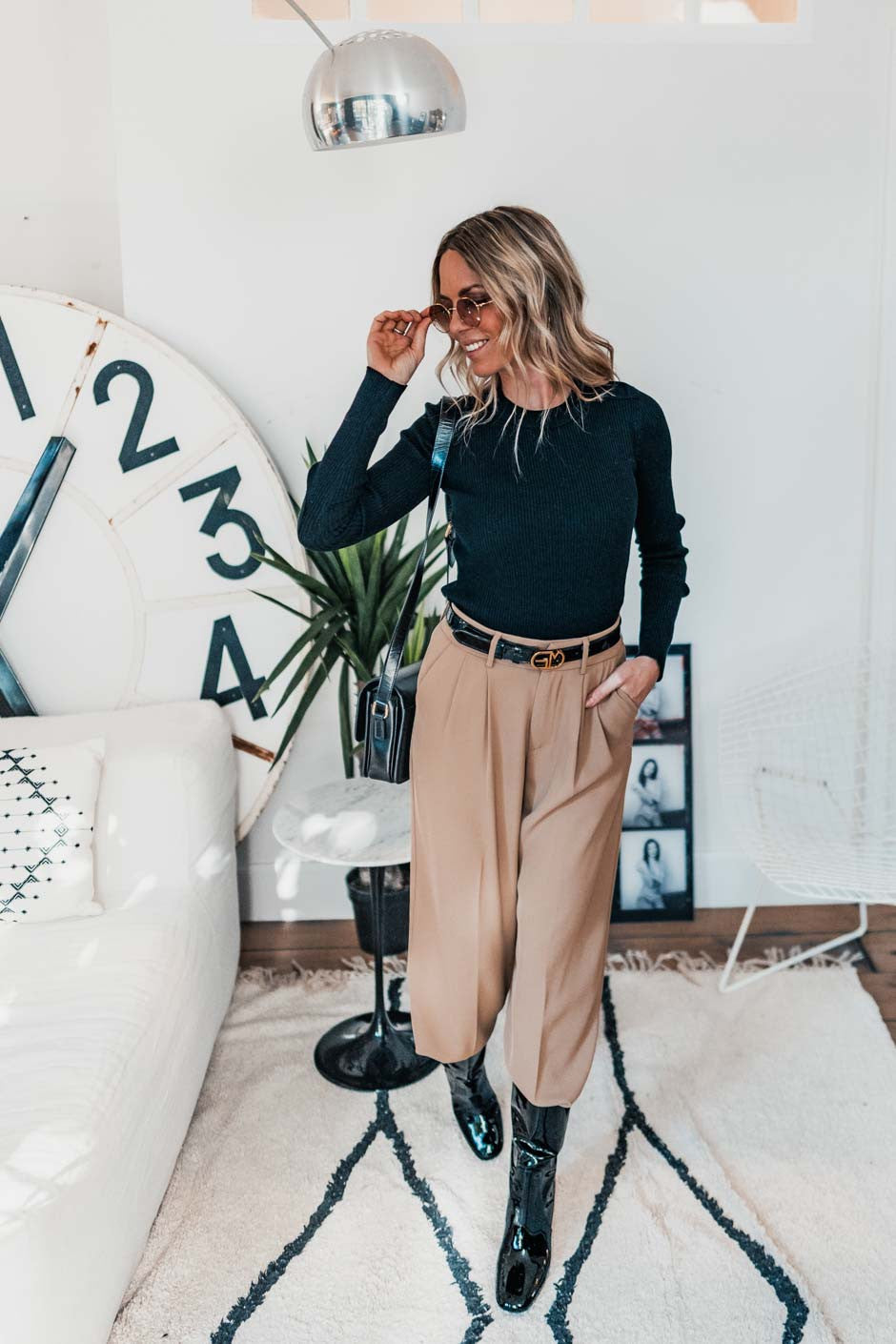 Flyer, black sweater, a new arrival at Grungemama, with a round neck, elbow patch detail, and shoulder tab. A decidedly timeless, fashionable, and casual look, just the way we like it at Grungemama.