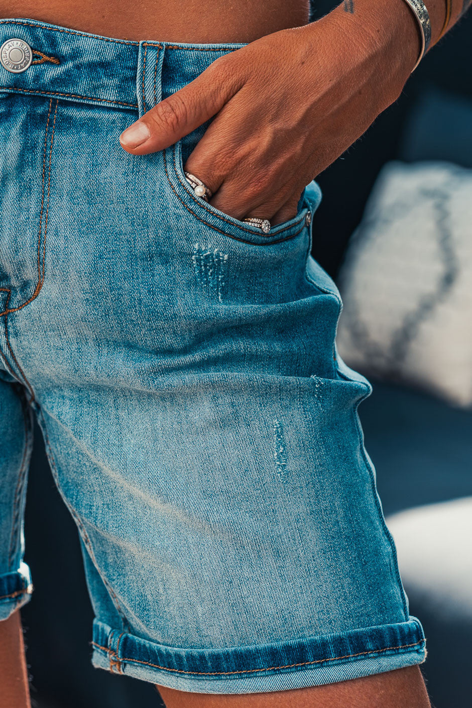 A flattering, mid-rise cut, the Dwayne stone blue shorts are a must-have. A modern and streamlined design. We love the longer length; these are the essential shorts to wear non-stop all season long for a super stylish look.