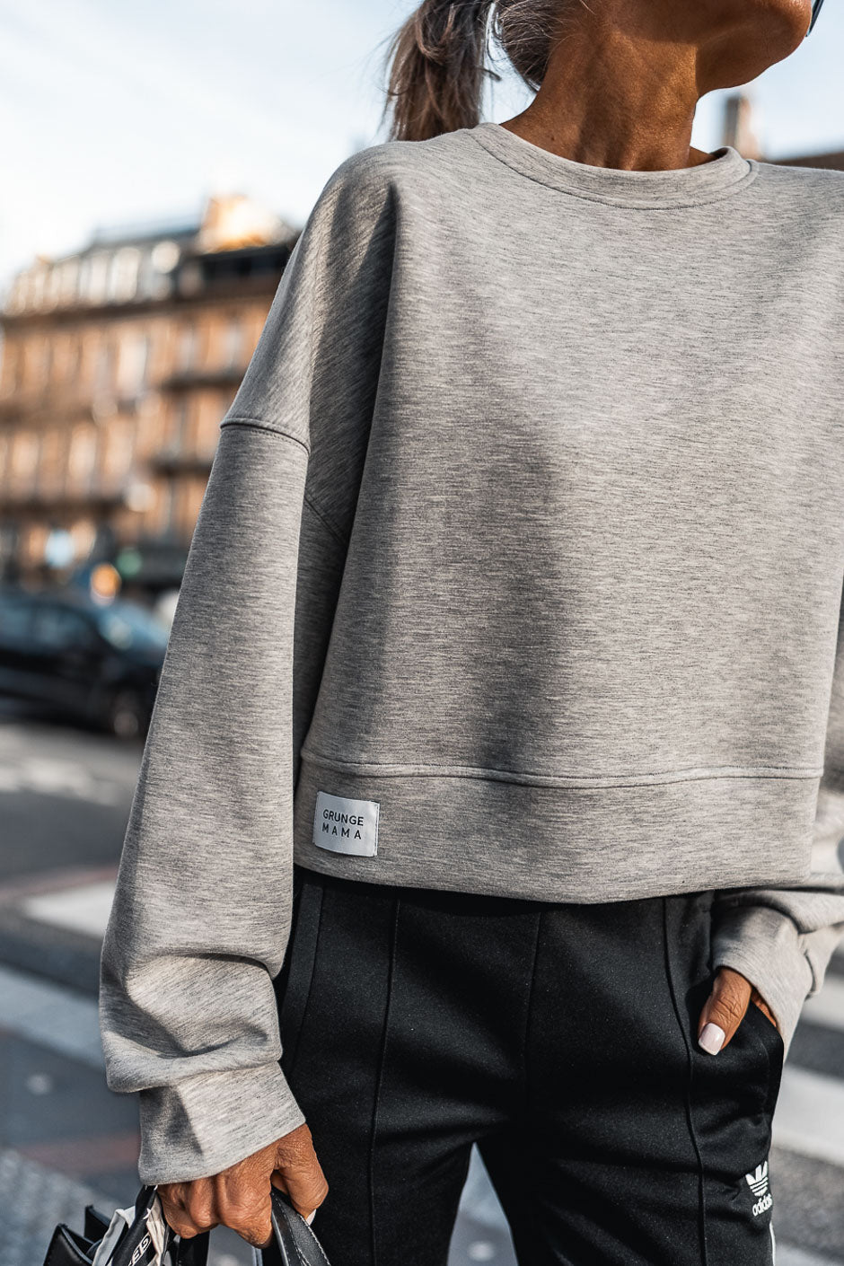 With its ultra-comfortable loose fit, cropped cut, and relaxed silhouette, the heather grey Shaggy sweatshirt is a true wardrobe essential. Easy to wear and style, it's the obvious choice you'll reach for without hesitation at Grungemama.