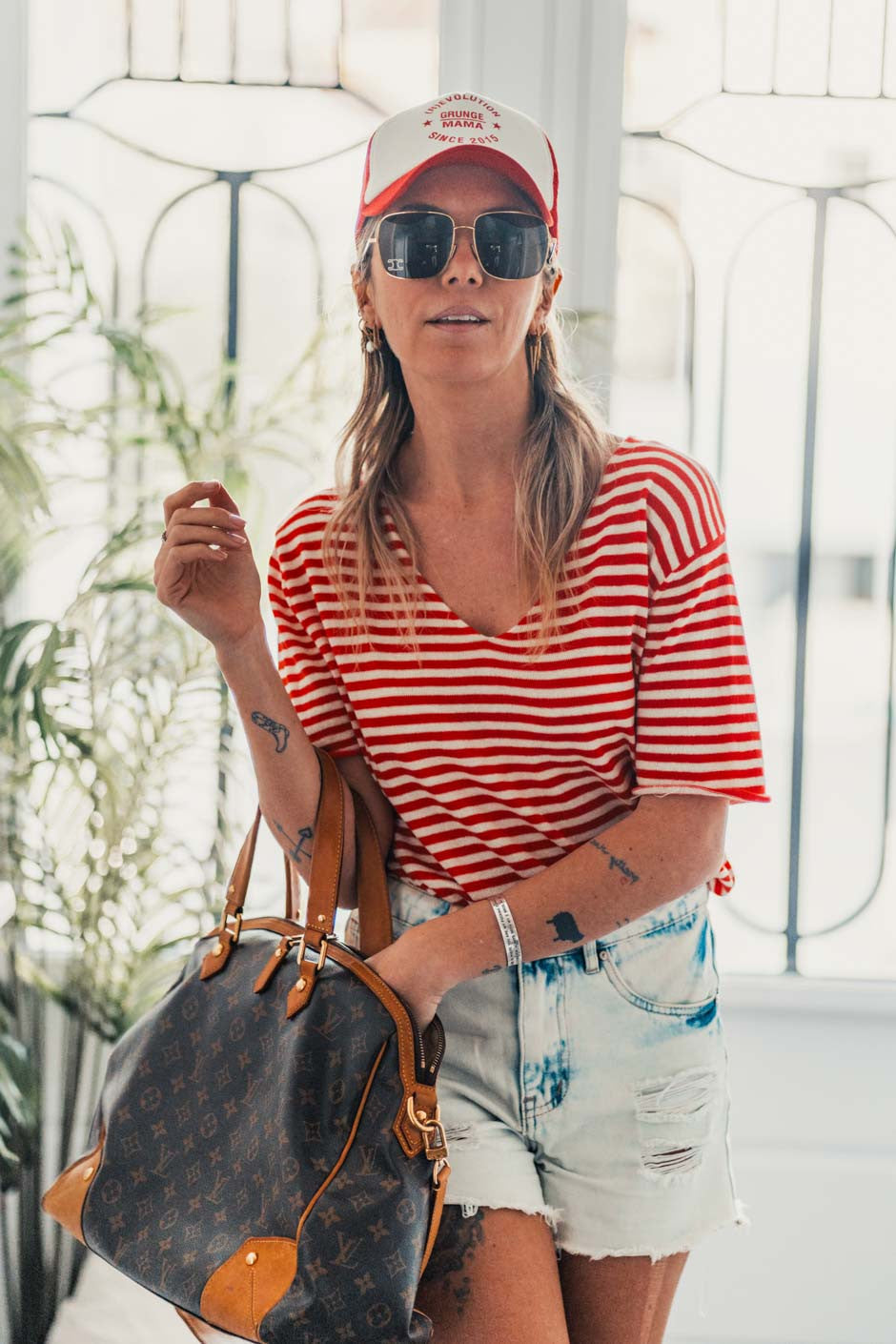The Herlin top from Banditas reinvents the classic Breton stripe with its vibrant orange stripes. Made from a lightweight knit fabric, it features a straight cut and short sleeves, perfect for a fresh and stylish look.