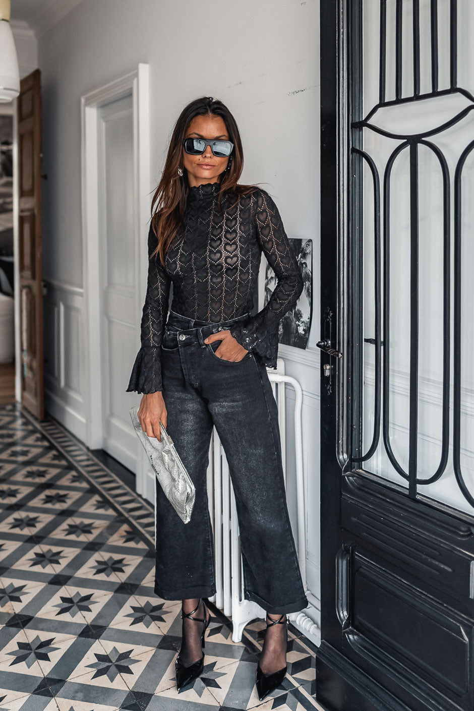 The Cute top has a fitted cut and a subtle sheer effect. The finishing touch is a raised jacquard fabric detail, making it perfect for any occasion.