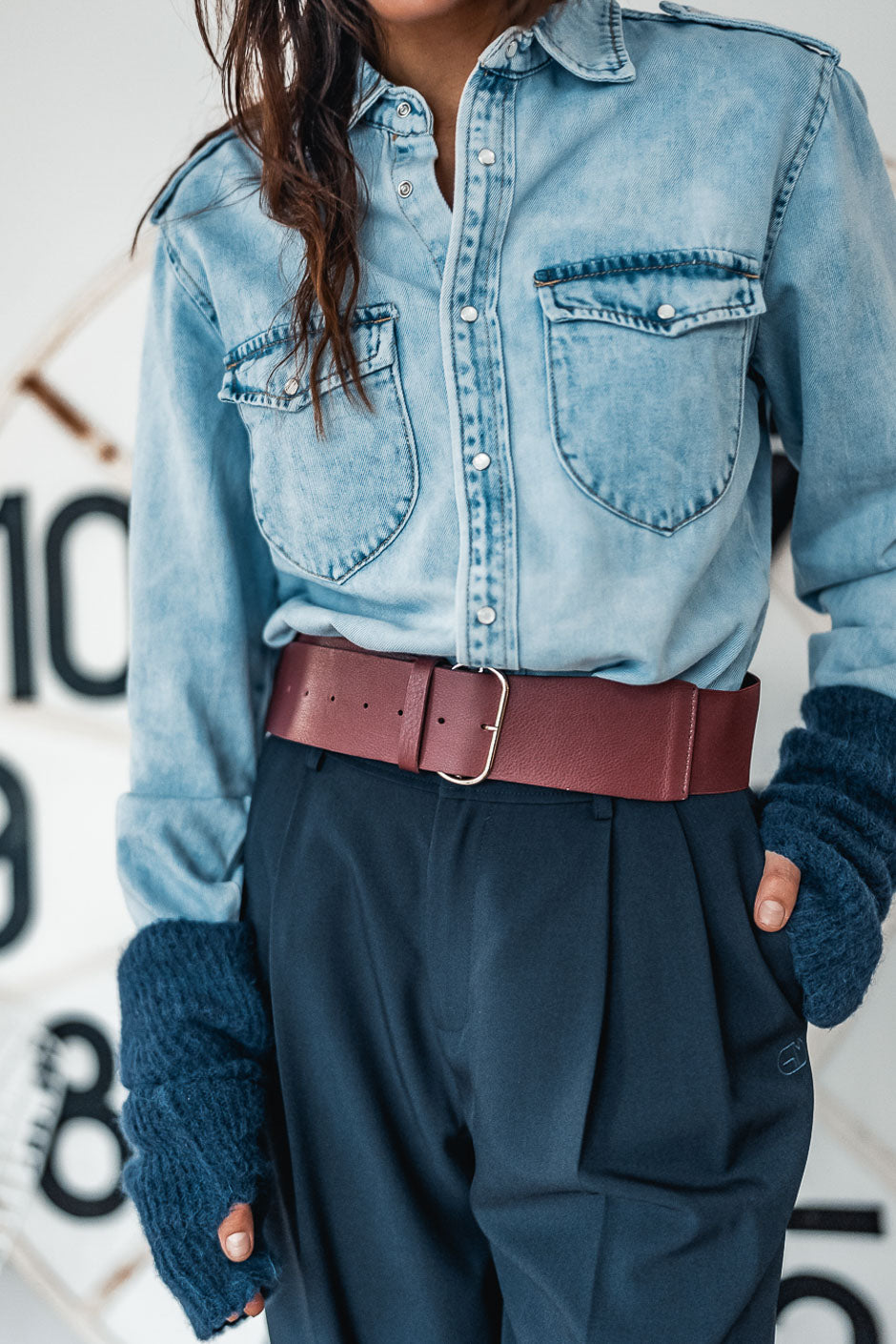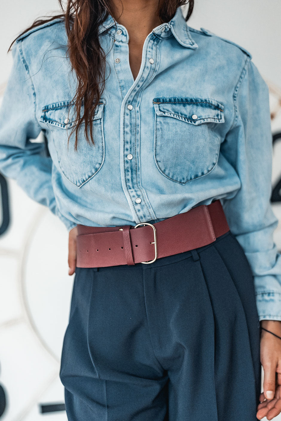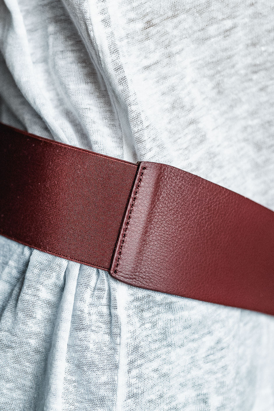 Camaleónico y ultramoderno, el cinturón burdeos Colby de Grungemama realza tanto un pantalón como un blazer oversize.