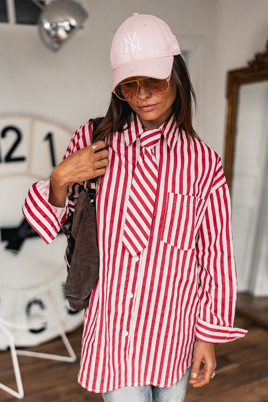 La camisa Jules de rayas rojas y rosas se basa en la elegancia de su corbata y un brillo radiante instantáneo. Perfecta con vaqueros azules Elton o pantalones de vestir.