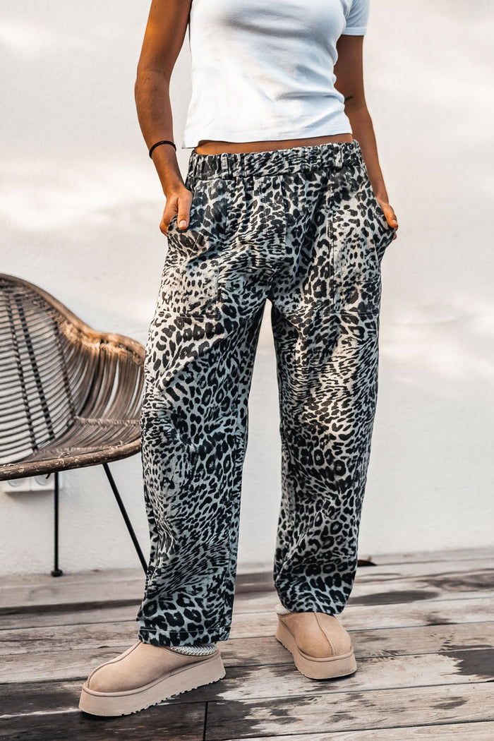 Lewis by Banditas, pantalones con estampado de leopardo y un estilo ultramoderno. Con cintura definida y pernera ancha, combinan a la perfección con un básico de Grungemama para un look urbano atrevido.