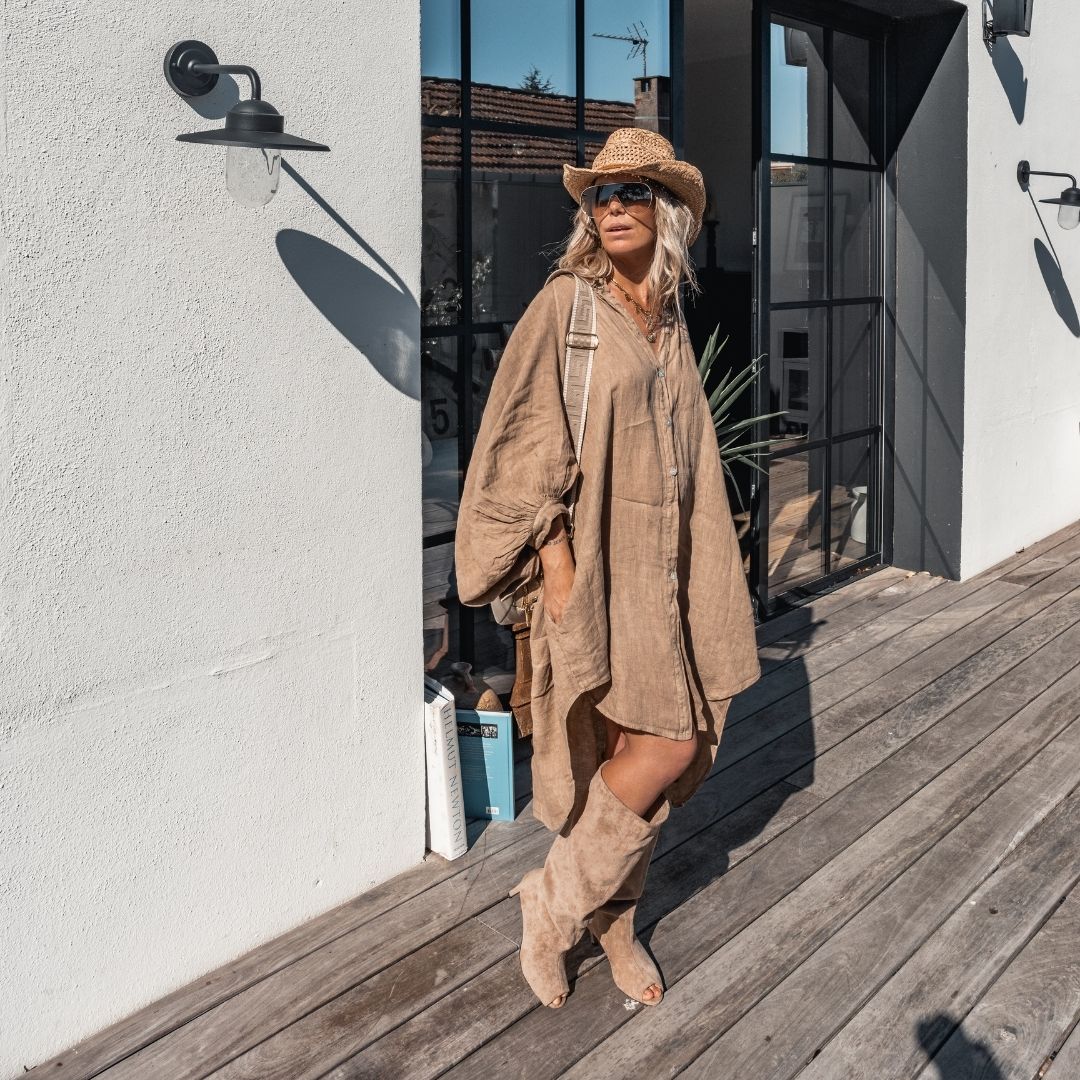 Nos encanta el estilo del vestido Anae de Grungemama: un corte oversize, 100% lino que acompaña cada uno de tus movimientos. Nos encanta su estilo, fácil, ligero, todo combinado para una gran comodidad.
