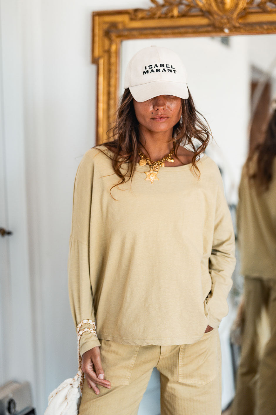 La camiseta Dolie amarilla de Grungemama, un básico de armario para esta temporada. Un corte regular, cuello barco para un look sencillo y atemporal.