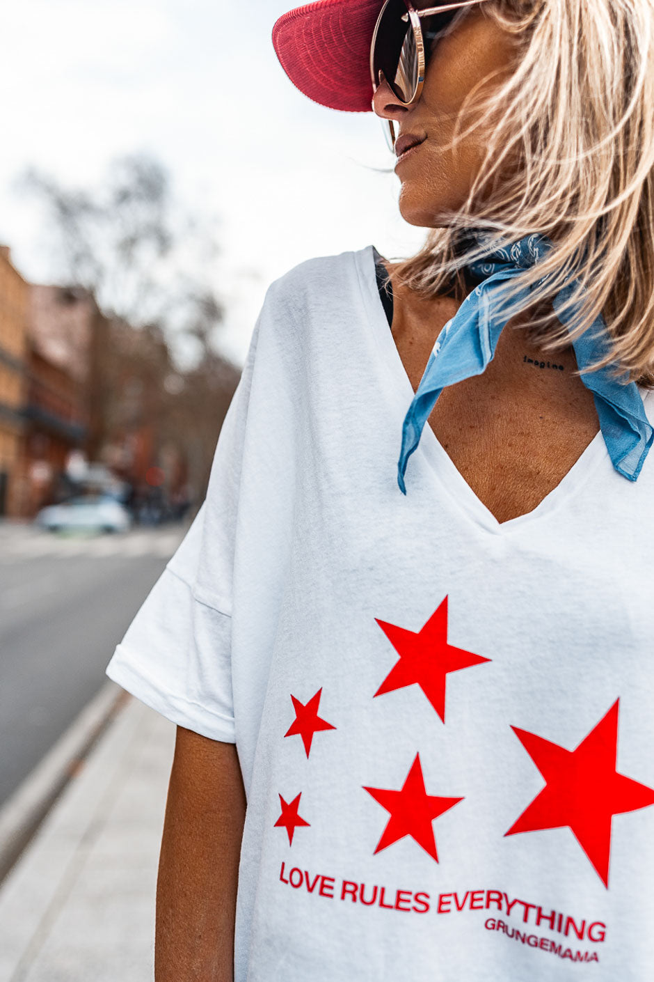 Dale un toque de brillo a tu armario con la camiseta blanca Every con estrellas rojas de Grungemama. Confeccionada con un tejido ultracómodo y un estilo atrevido, es fácil de usar a diario. ¡Nos encanta!