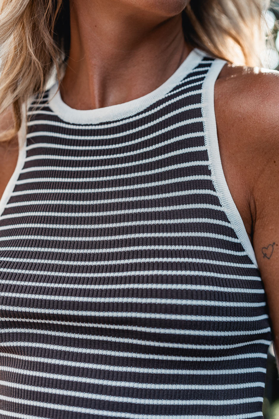 Con su corte ajustado y punto acanalado, el top Browni estiliza la figura sin ser recargado. Llévalo solo o en capas; es un básico de moda fácil de llevar para lucir todo el año.
