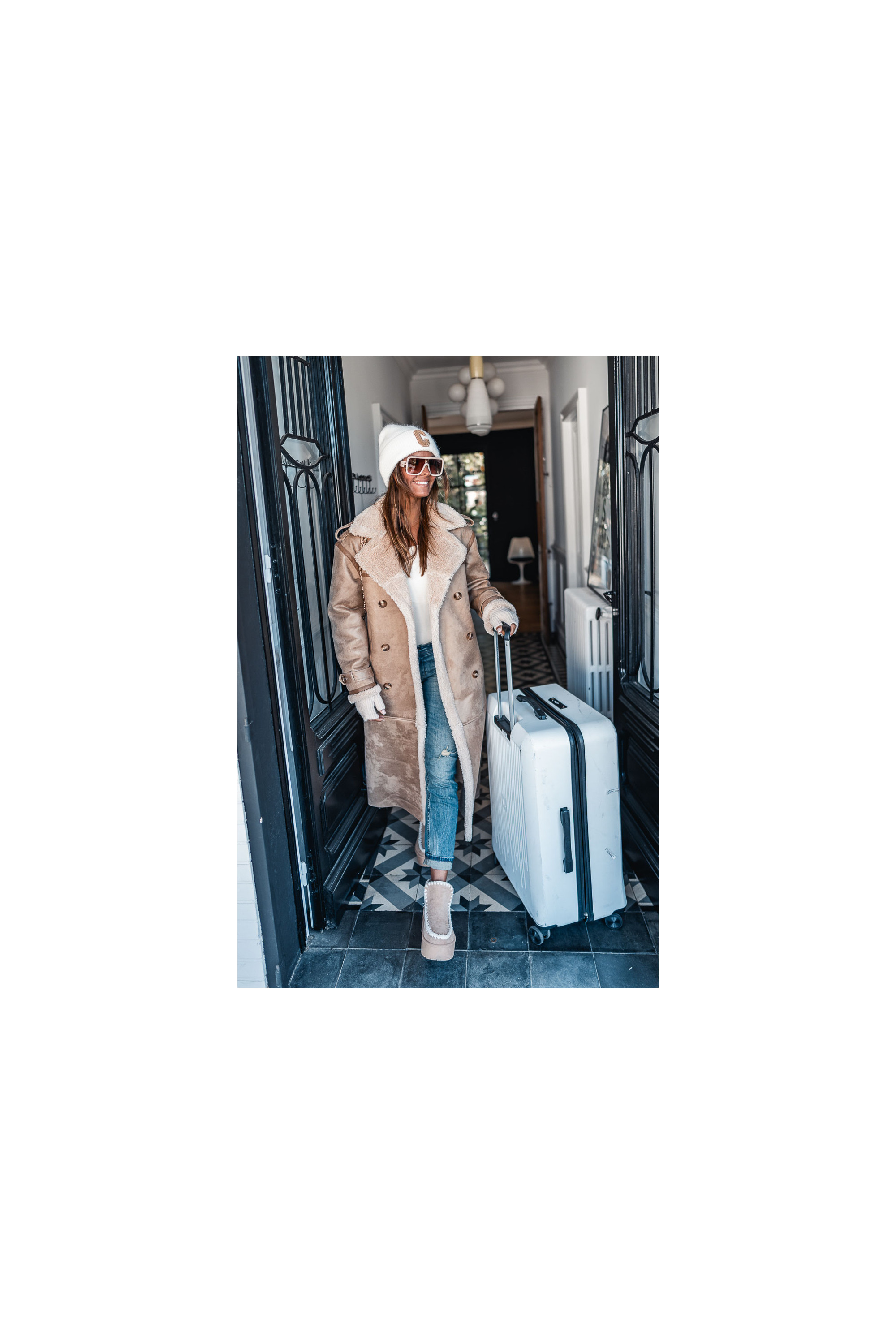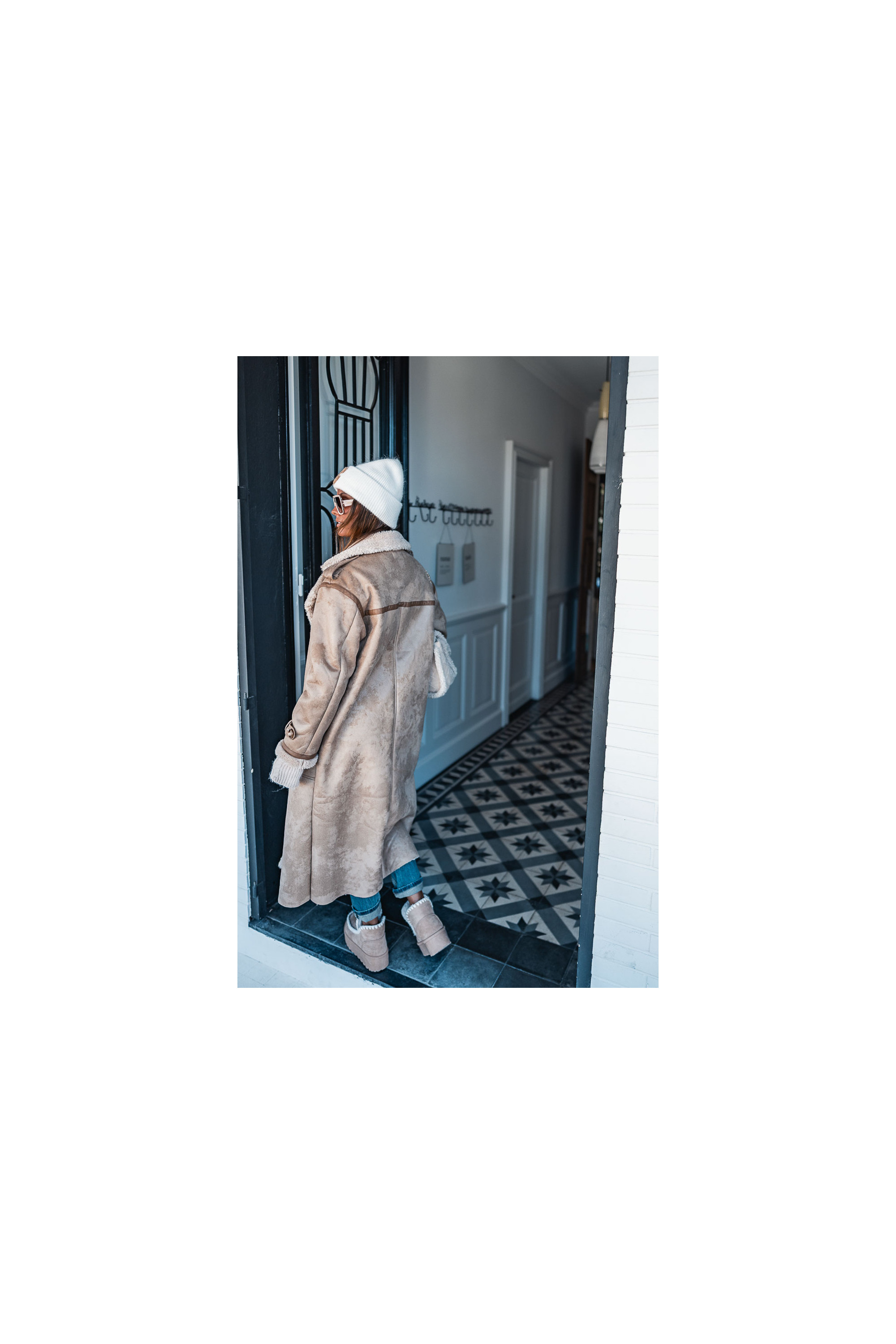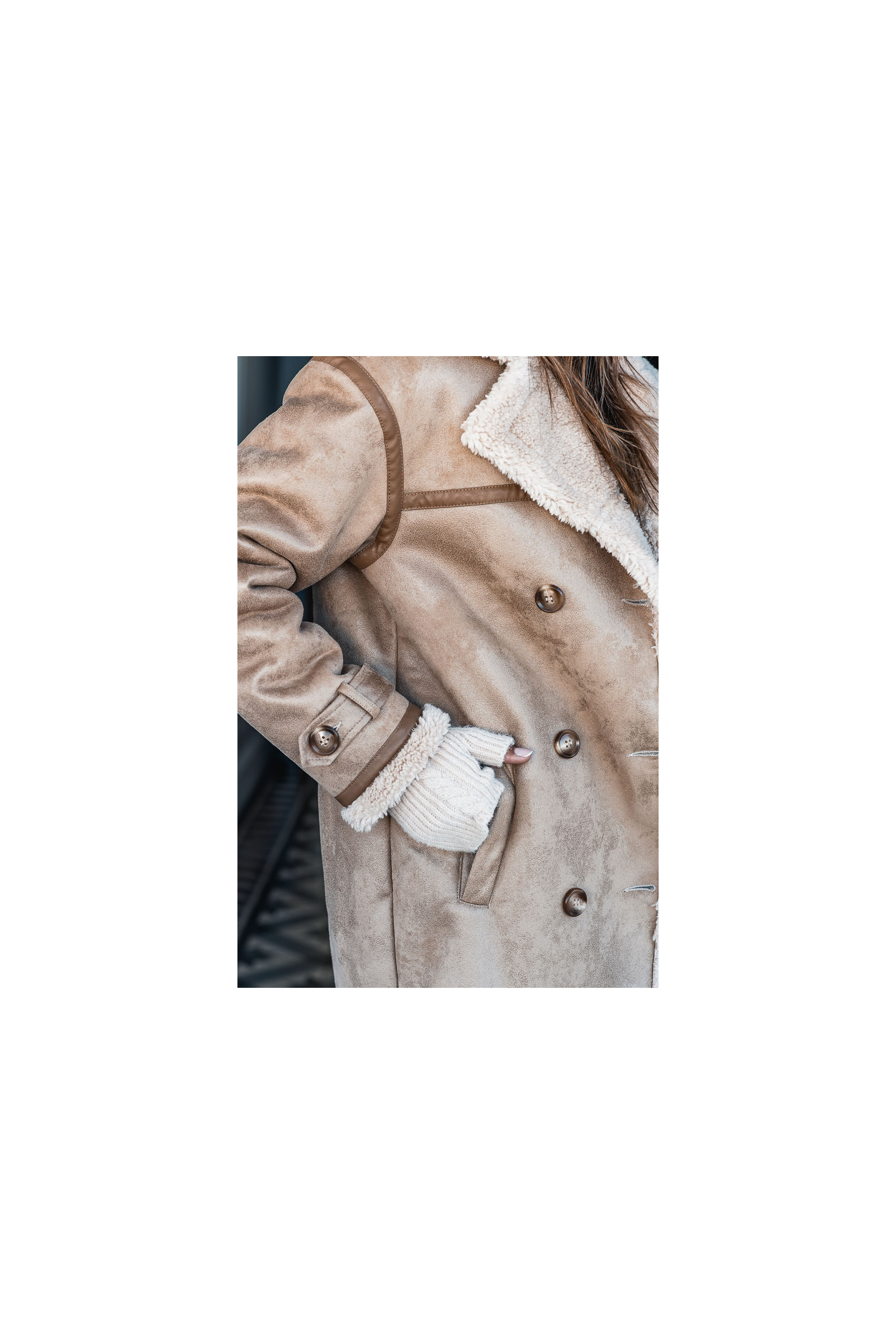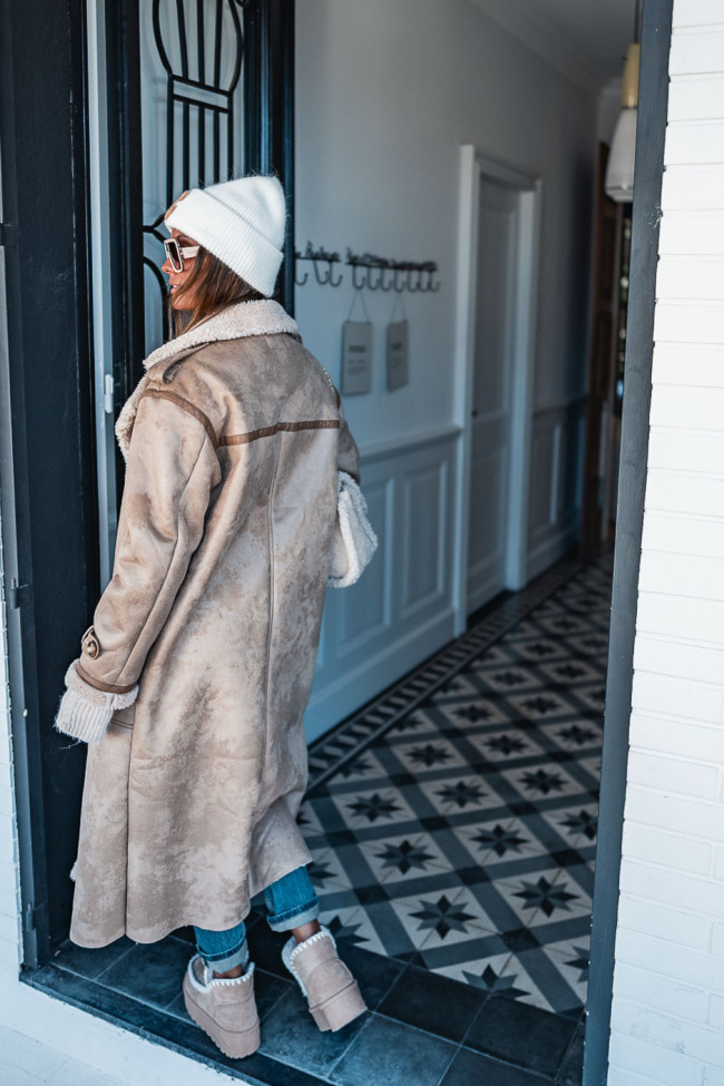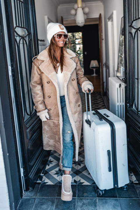 Le long manteau Hoonie façon peau retournée est l'indispensable cette saison. Un look osé, mais qui promet des looks assumés tout en restant au chaud. On le mixe avec son jeans du moment, une paire de boots, le look est donné.