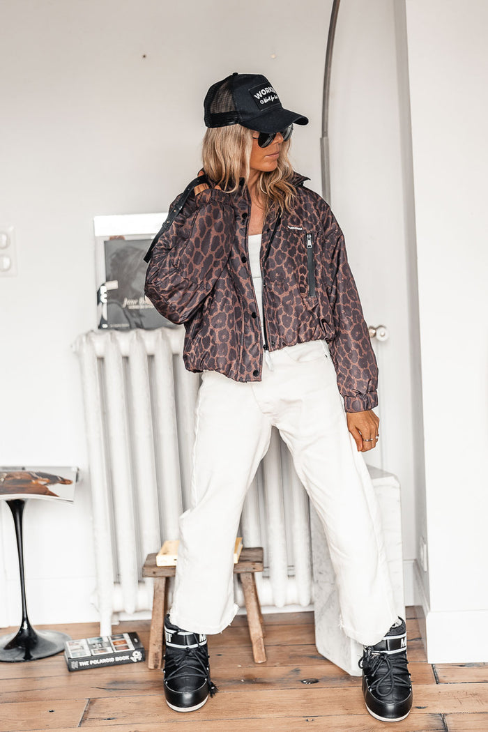 Allure cool et sporty pour le blouson Fawn léopard by Grungemama. Un blouson aussi bien mode avec sa coupe courte oversize trapèze que pratique avec sa matière déperlante. On aime l’enfiler pour filer au yoga.