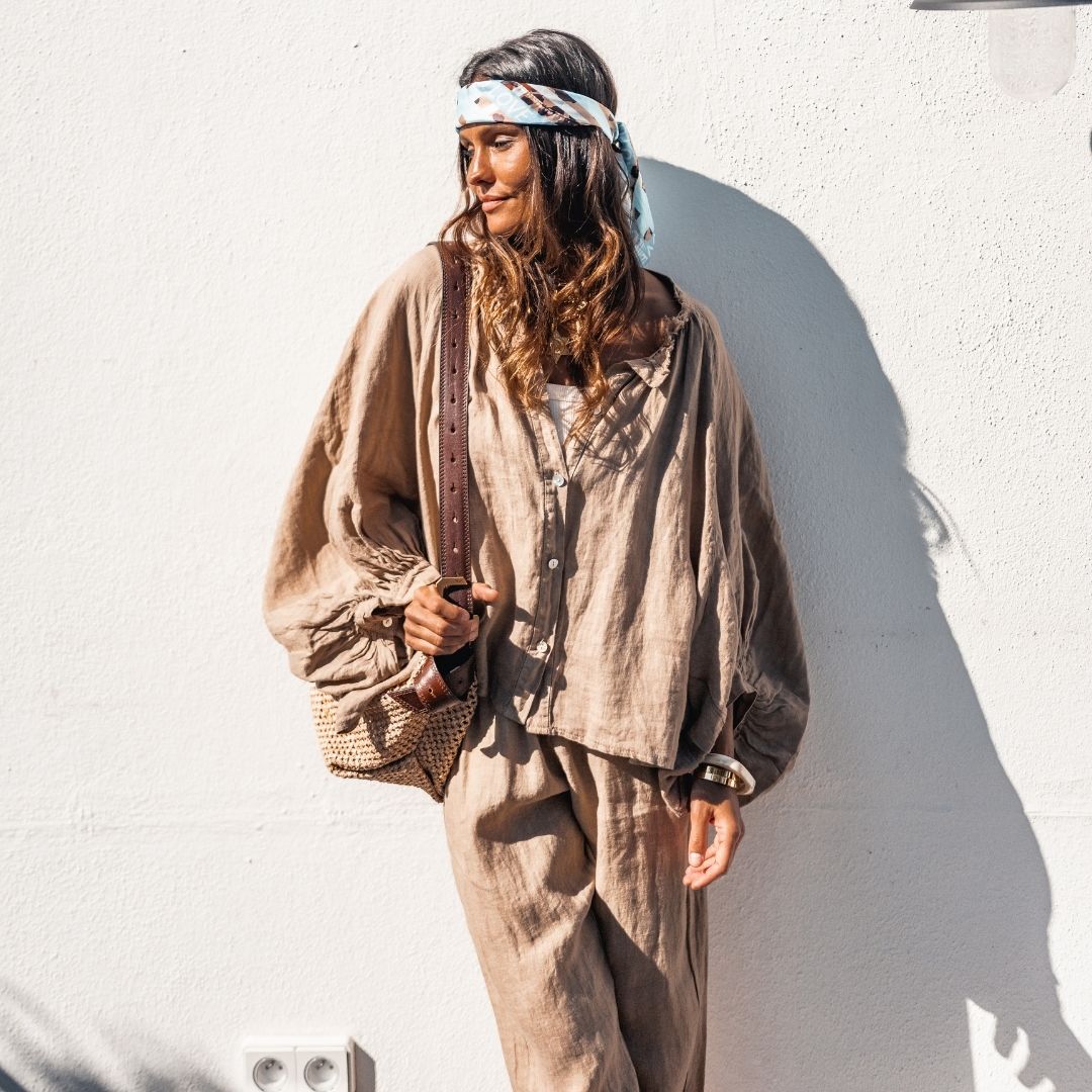 On craque pour la chemise Honia by Grungemama : dans une coupe oversize en lin, fluide et légère, qui suit tous vos mouvements pour un confort absolu et un style effortless. A porter aussi avec le pantalon Moena assorti