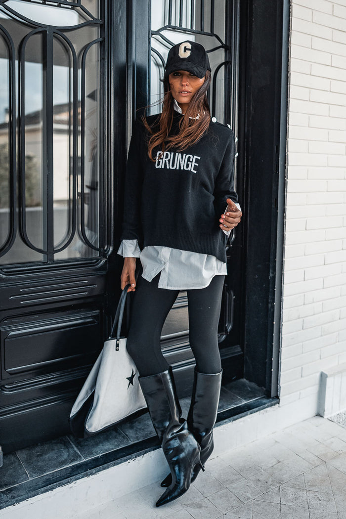 L’indispensable du dressing Grungemama : découvrez le pull femme Carla noir, l'équilibre parfait entre confort absolu et allure rock.