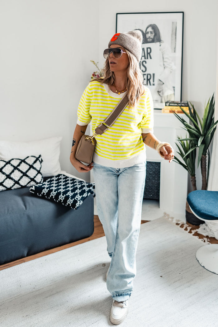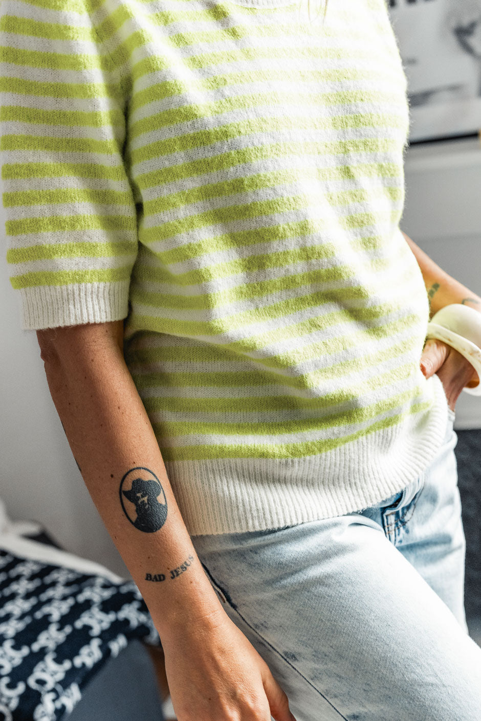 Le pull Spring rayé écru et anis de By Grunge Mama insuffle fraîcheur et douceur à votre silhouette. Léger et lumineux, il se superpose facilement pour dynamiser vos looks avec une touche printanière. Ses rayures délicates illuminent le teint et apportent cette note de vitalité qui annonce la belle saison. Une pièce facile à porter, parfaite pour accueillir les premiers jours ensoleillés avec style.